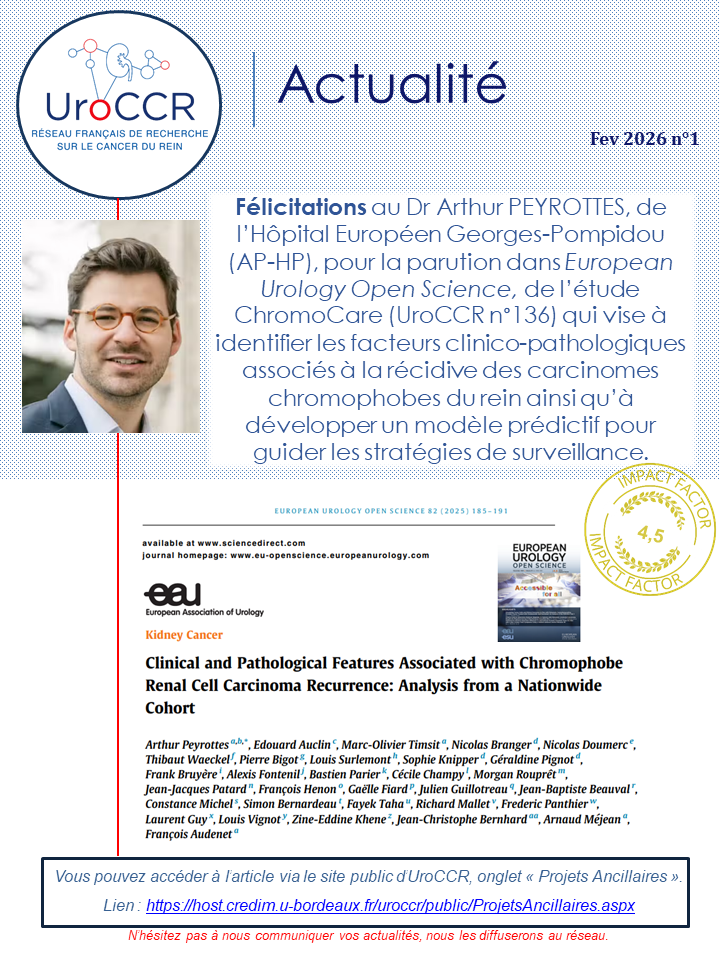 Des algorithmes d’intelligence artificielle ont été développés et validés à partir de la base UroCCR., Leur utilisation offre de nouvelles perspectives pour améliorer la prise en charge personnalisée des patients, optimiser les stratégies thérapeutiques et renforcer la recherche clinique en urologie.